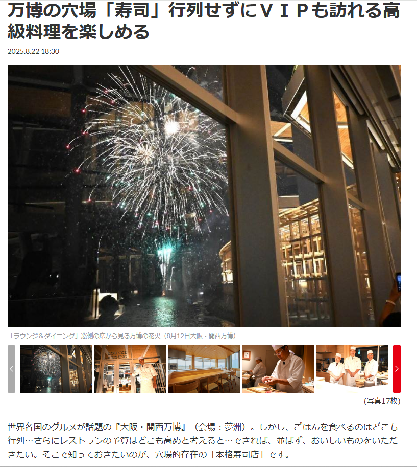 ぜひ大阪・関西万博に足をお運びいただき、【鮓 晴日】にお越しください。